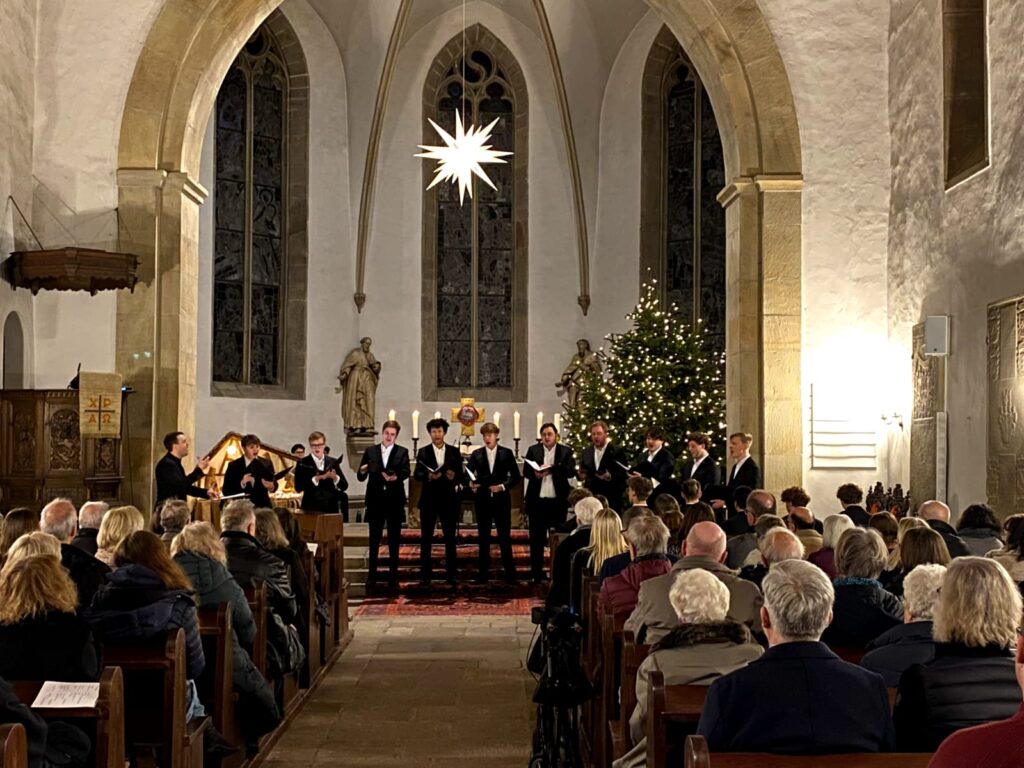 Parallel dazu starteten Tenöre und Bässe – gemeinsam mit den Männerstimmen des Konzertchors Westfalica – in die Proben für ein Konzert mit reinem Männerchor-Repertoire, das direkt einige Tage später Mitte Januar zu Gehör gebracht wurde: Im Rahmen der „Syburger Sonntagsmusiken“ in St. Peter zu Syburg Dortmund führten sie ihr Programm mit Werken von Felix Mendelssohn Bartholdy über Wilhelm Nabel bis zu Ralph Vaughan Williams und Richard Coburn unter der Leitung von Johannes Honecker auf. Unterstützt wurden sie durch fünf junge Solisten des Jugendkonzertchors aus der Gesangsklasse von Jens Hamann im Alter von 16 und 17 Jahren, Yves Gieler, Tom Preuß, Elias Sawallich und Jasha Volmerich, die in Vorbereitung auf den Regionalwettbewerb von „Jugend Musiziert“ Auszüge aus ihrem Solorepertoire mit Pianist Tilman Wolf präsentierten.